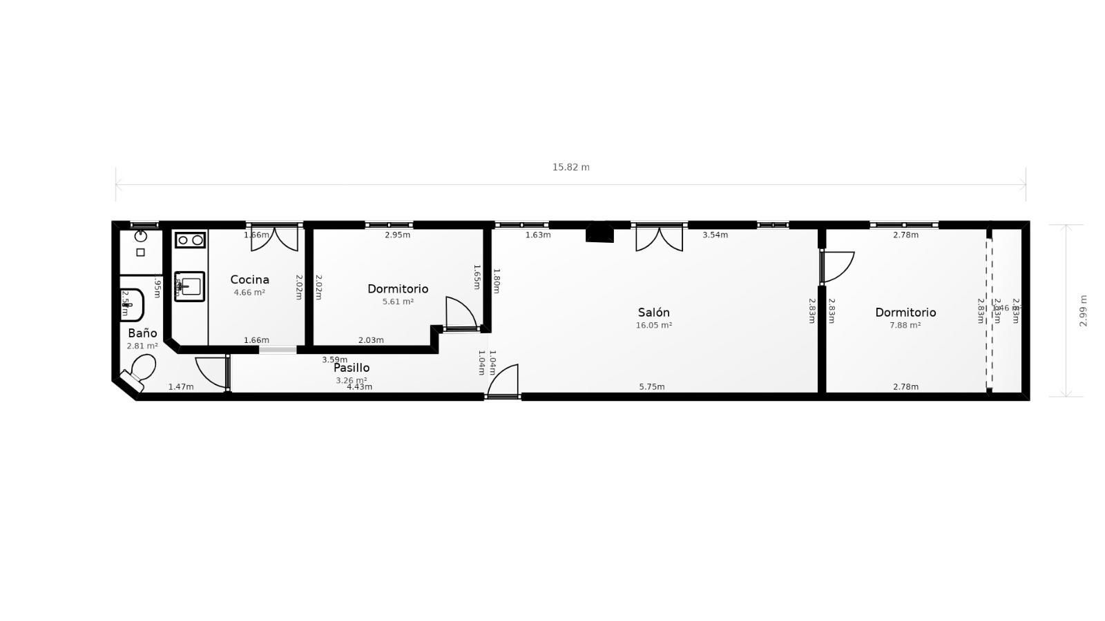 Dispone de dos habitaciones, un baño completo, salón-comedor luminoso y cocina independiente, con estancias bien proporcionadas que se adaptan perfectamente tanto a vivienda habitual futura como a inversión segura.