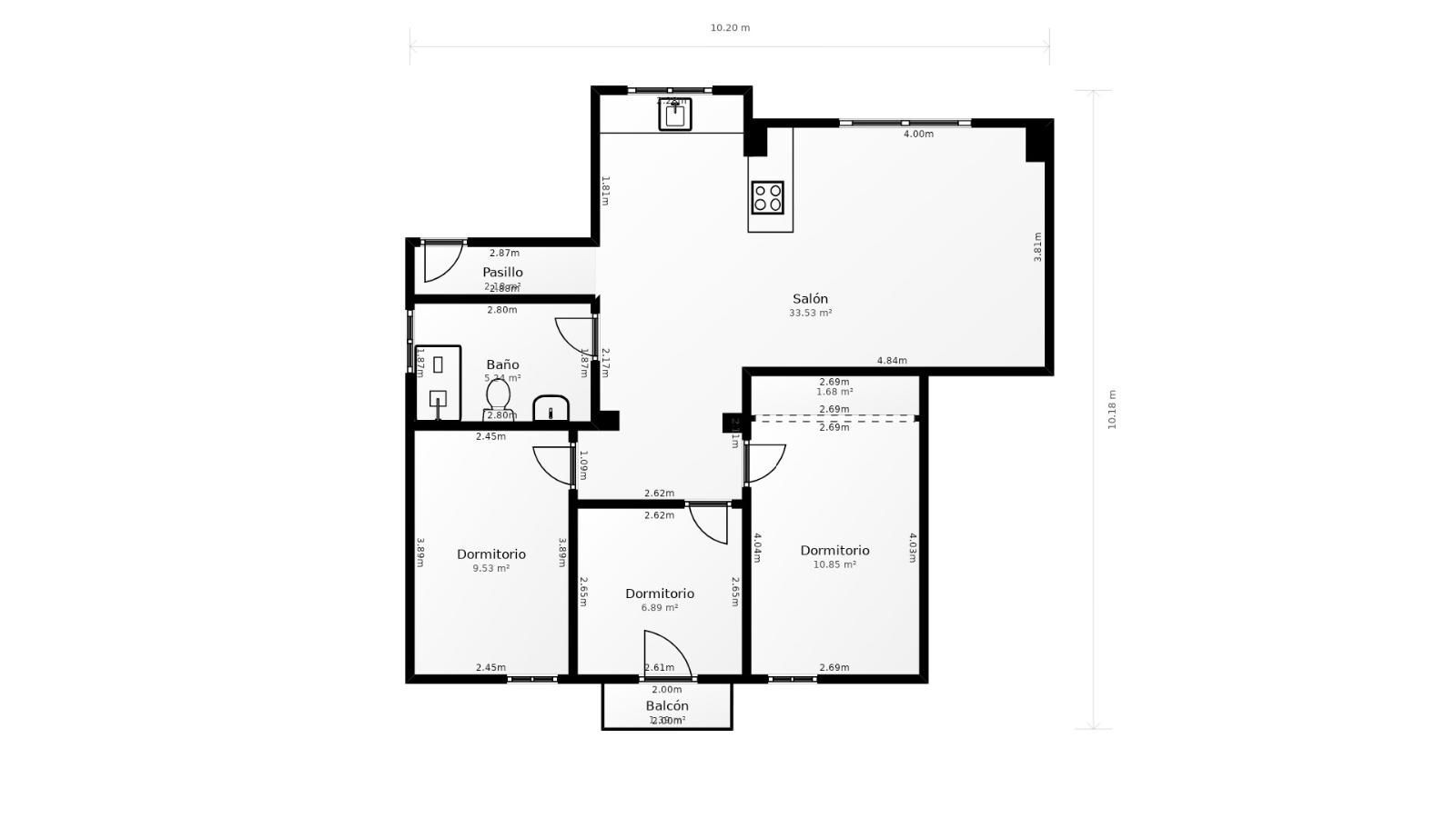 La propiedad cuenta con tres amplias habitaciones, todas ellas exteriores, lo que garantiza una excelente entrada de luz natural durante todo el día. Dispone de un baño completo exterior, moderno y elegante, cuidadosamente diseñado.