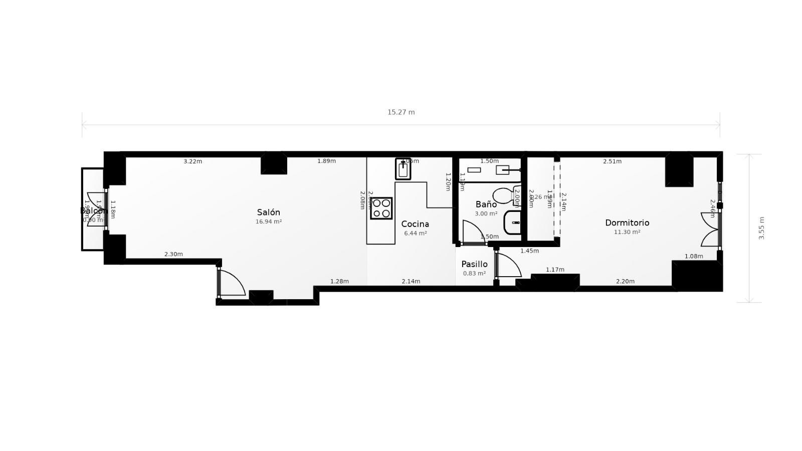 Appartement en vente á Valencia, avec 60 m2, 1 chambres et 1 salles de bain et Air conditionné.